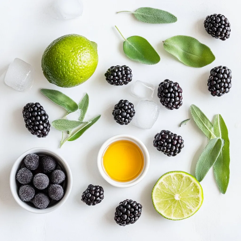 Use 6 fresh sage leaves in your mocktail. Sage adds a unique flavor and aroma. It pairs well with the blackberries, making the drink special. Keep an extra sprig for garnish if you like.