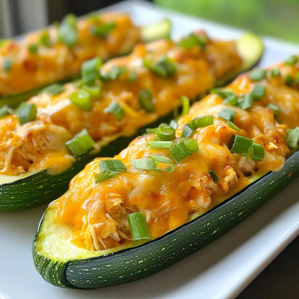 Serving your stuffed zucchini boats well makes a big impact. Use a bright platter to show off the vibrant colors. Drizzle extra buffalo sauce on the plate. This adds a pop of color and flavor.