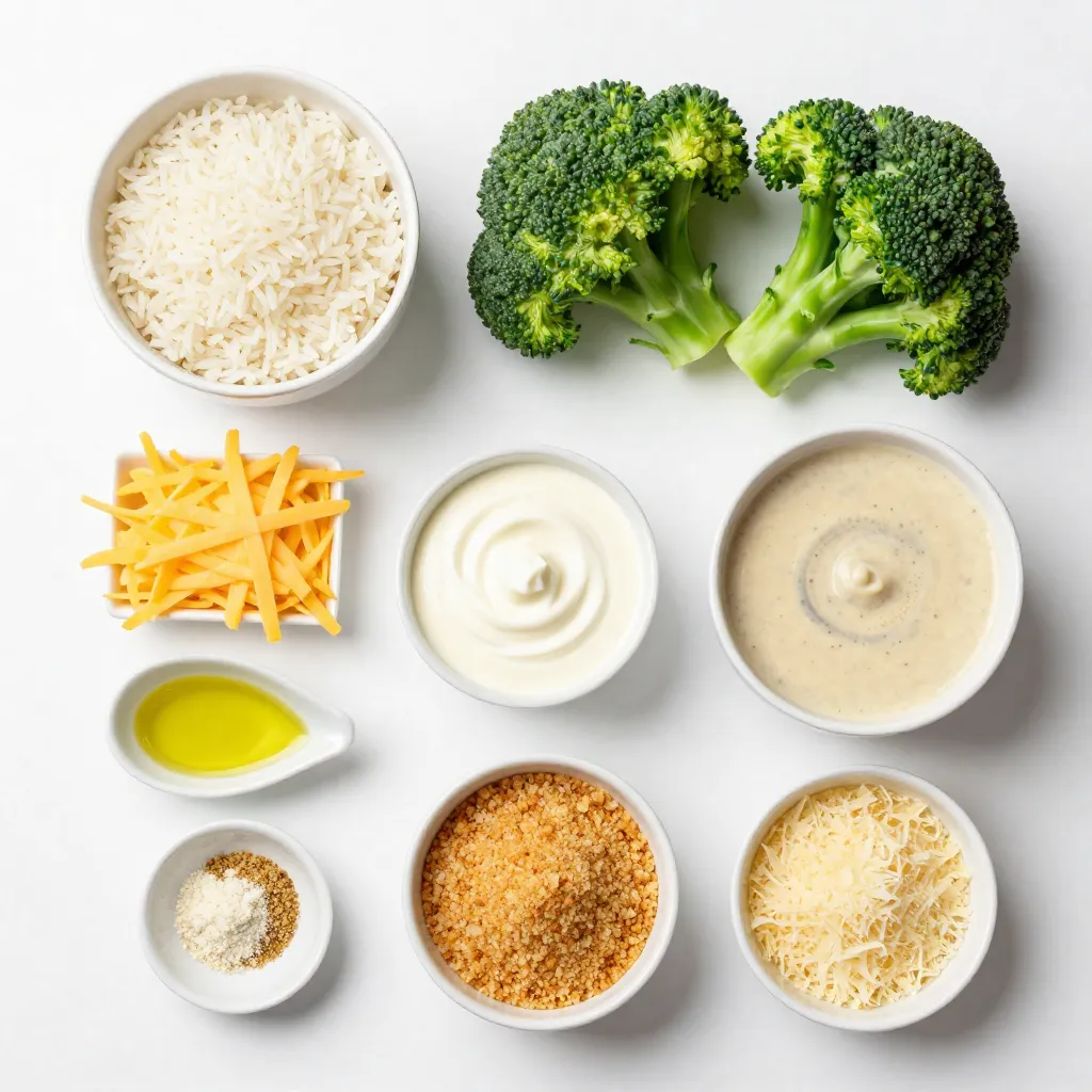 Gathering quality ingredients makes a big difference. I love using fresh broccoli florets for this casserole. They add bright color and a nice crunch. Long-grain white rice is perfect as it cooks evenly. The broth gives a warm flavor that pairs well with the cheese.