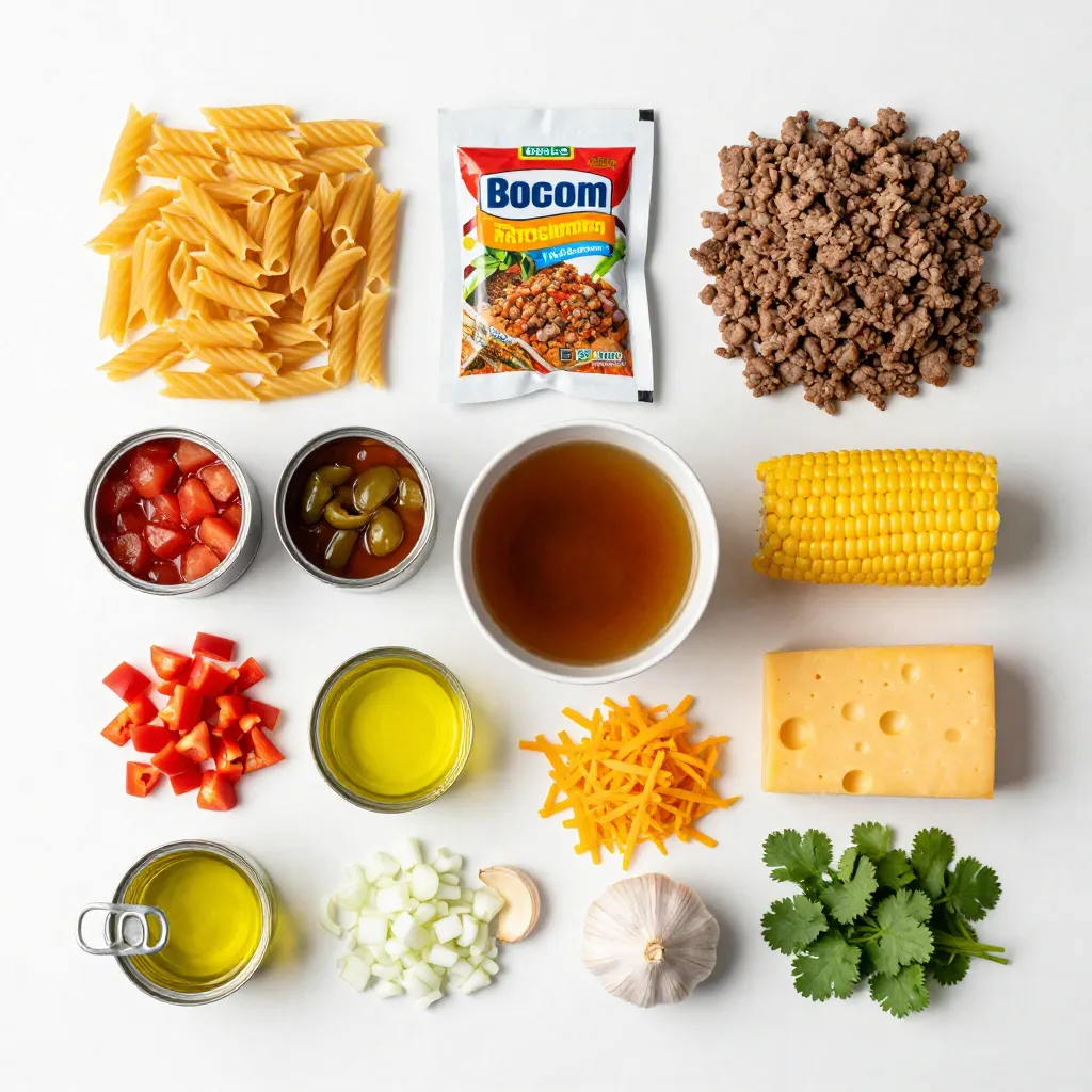 Main Ingredients for Cheesy Taco Pasta Skillet