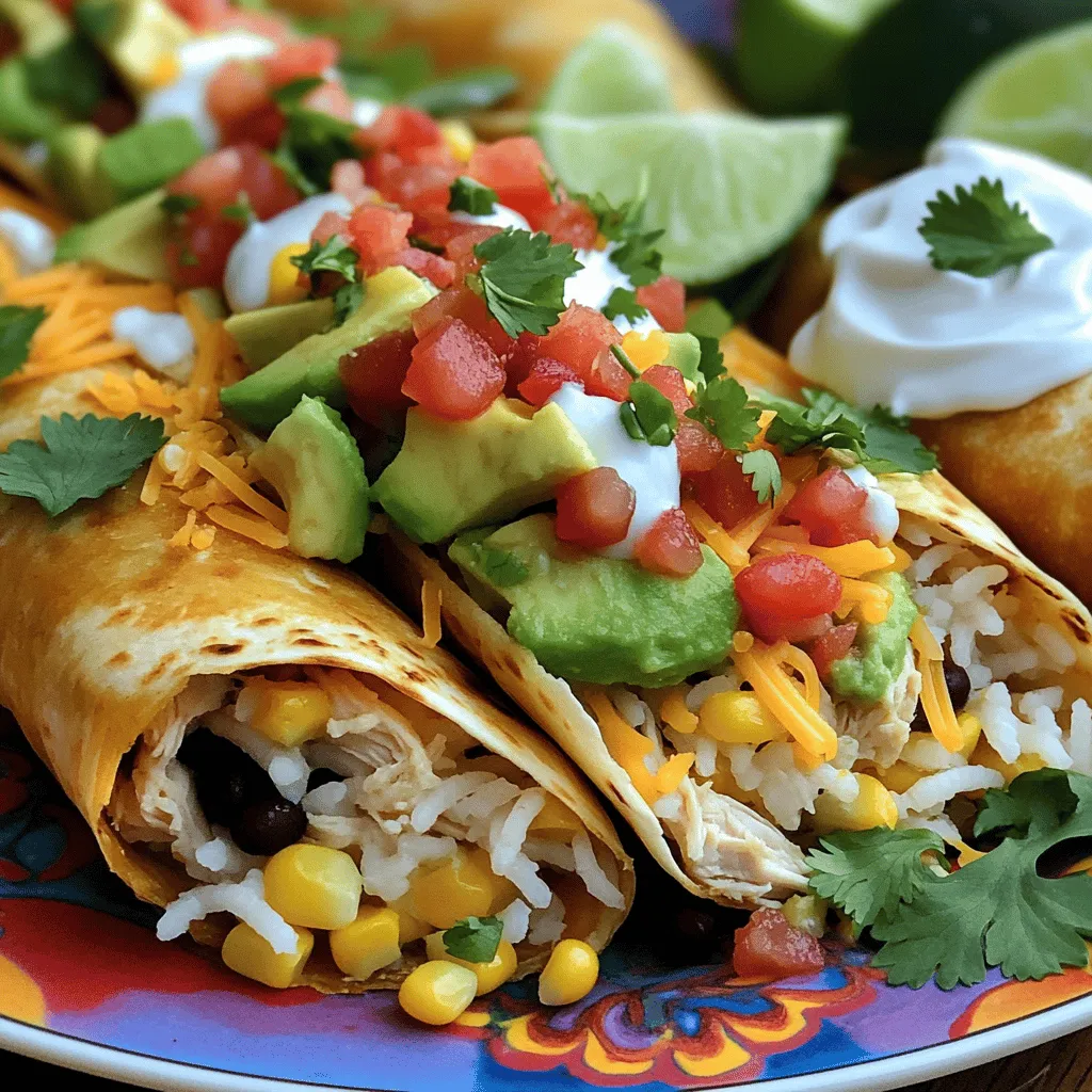 ![- 2 cups cooked chicken, shredded - 1 ripe avocado, diced - 1 cup cooked rice - 1 cup black beans, drained - 1 cup corn - 1 teaspoon ground cumin - 1 teaspoon garlic powder - 1 teaspoon fresh lime juice - Salt and pepper to taste - Fresh cilantro, chopped - 4 large flour tortillas - 1 cup shredded cheese (cheddar or Mexican blend) When I make chicken avocado burritos, I start with the main ingredients. Shredded chicken is key. You can use grilled or rotisserie chicken for extra taste. Diced avocado adds creaminess. Cooked rice gives the burrito a nice base. Black beans and corn bring in fiber and sweetness. Next, I add the seasonings. Ground cumin adds warmth, while garlic powder boosts flavor. Fresh lime juice brightens everything up. Don’t forget salt and pepper to taste! Fresh cilantro adds a pop of color and fresh herb flavor. For the wrap, I choose large flour tortillas. They hold everything well. I like to sprinkle shredded cheese on top, either cheddar or a Mexican blend. This cheese melts beautifully and adds richness. For the full recipe, check the earlier section. Enjoy making these delicious burritos! First, grab a large mixing bowl. Add the shredded chicken, diced avocado, cooked rice, black beans, corn, and pico de gallo. Sprinkle in the ground cumin, garlic powder, and lime juice. Season with salt and pepper to taste. Mix everything together gently. You want each piece to be coated in flavor. Now, lay out your tortillas on a clean surface. Make sure they are warm; this helps with folding. Spoon a good amount of the chicken mixture into the center of each tortilla. Then, sprinkle shredded cheese on top of the filling. Heat a skillet over medium heat. Carefully place the burritos seam-side down in the skillet. Cook for about 3-4 minutes on each side. You want them golden brown and crispy. This adds a nice crunch to the meal. Once done, take them out and let them cool for a minute. Slice in half for easy serving. Enjoy your delicious Chicken Avocado Burritos! To make your chicken avocado burritos taste even better, try these seasonings: - Chili powder: Adds a warm kick. - Paprika: Gives a smoky flavor. - Cilantro: Freshens up the taste. You can also add these ingredients for variety: - Jalapeños: For extra heat. - Lettuce: For crunch and freshness. - Sour cream: Adds creaminess and tang. Plating your burritos nicely can impress guests. Here are some ideas: - Use a colorful plate: Bright colors make food pop. - Arrange burritos in a circle: This draws the eye. - Serve with sides: Add pico de gallo and sour cream for dipping. For garnishes, consider these: - Extra cheese: Sprinkle on top for richness. - Chopped cilantro: Adds color and flavor. - Lime wedges: For a zesty touch. To ensure your burritos turn out great, watch for these common mistakes: - Overfilling burritos: This makes them hard to roll. Keep the filling to about 1 cup. - Wrong cooking temperature: Too high can burn the tortilla. Medium heat is best for a golden brown finish. {{image_4}} You can easily switch up the protein in your burritos. Try using beef, turkey, or even tofu. Each option brings a new taste. For beef, go with ground or shredded. Turkey gives a leaner choice, while tofu works well for vegans. Each meat adapts the flavors of the dish. Beef adds richness, turkey feels light, and tofu absorbs the spices well. You can customize your burritos by changing some ingredients. Swap white rice for brown rice for more fiber. If you want a twist, use quinoa instead. Different beans can also change the taste. Pinto beans or chickpeas offer unique flavors. You can even try different salsas. Mango salsa adds sweetness, while a spicy salsa can give a kick. If you need gluten-free options, use corn tortillas instead of flour. They taste just as good and hold the filling well. For low-carb diets, you can skip the rice altogether. Just add more veggies like bell peppers or zucchini. These swaps keep your burritos tasty while fitting your diet. Customize to suit your needs! To store leftover burritos, wrap them tightly in plastic wrap or foil. You can also place them in an airtight container. This helps keep them fresh. In the fridge, they last about 3 to 4 days. Make sure to label the container with the date to track freshness. You can freeze pre-cooked burritos for up to 3 months. Wrap each burrito in plastic wrap and then foil. This keeps the burritos from getting freezer burn. When you’re ready to eat, thaw them overnight in the fridge before reheating. For reheating, you have two main methods: the oven or microwave. 1. Oven method: Preheat your oven to 350°F (175°C). Place the burrito on a baking sheet and cover it with foil. Heat for about 15-20 minutes, until warmed through. This method keeps the burrito crispy. 2. Microwave method: If you’re in a hurry, you can microwave the burrito. Place it on a microwave-safe plate and cover it with a damp paper towel. Heat for 1-2 minutes, checking it often. This method may make the burrito soft but is faster. For the best results, the oven method helps maintain crispiness while warming. Enjoy your tasty chicken avocado burritos! Chicken avocado burritos last about 3 to 4 days in the fridge. Store them in an airtight container. This keeps them fresh and tasty. Always check for any changes in smell or texture before eating. Yes, you can make chicken avocado burritos ahead of time. Prepare the filling and store it separately. This helps keep the tortillas fresh. Assemble the burritos when you are ready to eat. Wrap them tightly in foil or plastic wrap for best results. Great side dishes to serve with chicken avocado burritos include: - Fresh guacamole - Mexican rice - Corn salsa - A simple salad with lime dressing - Tortilla chips with salsa These sides add color and flavor to your meal. Enjoy creating a complete feast! For the full recipe, check out the [Full Recipe]. You can create delicious chicken avocado burritos with just a few simple steps. Combining shredd