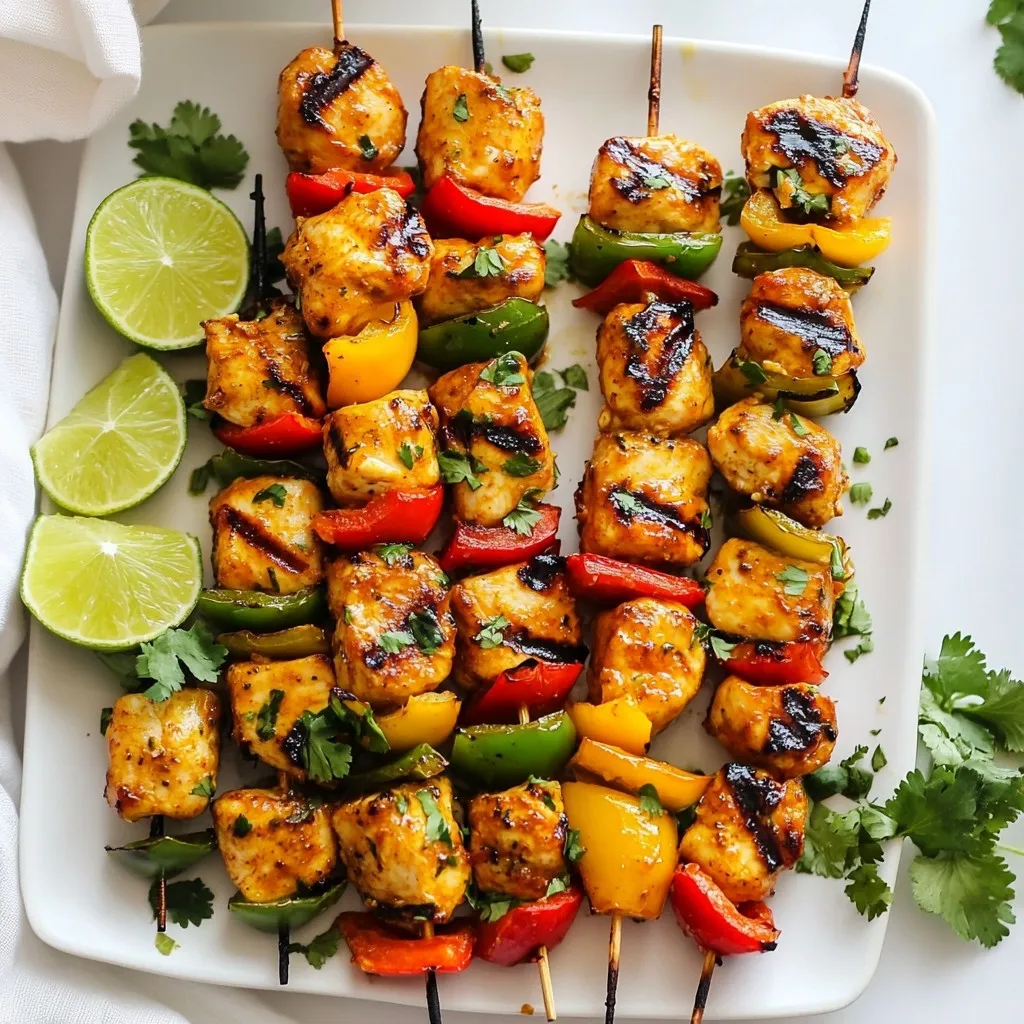 The key to great flavor in Chipotle Lime Chicken Skewers is the marinade. It combines bold chipotle peppers, fresh lime juice, and rich olive oil. This mix brings life to the chicken. I like to use fresh ingredients for the best taste. The chicken pairs well with colorful bell peppers, adding a nice crunch. For garnish, fresh lime and cilantro brighten the dish. You can also serve a tasty dipping sauce on the side. This makes the meal more fun and interactive!