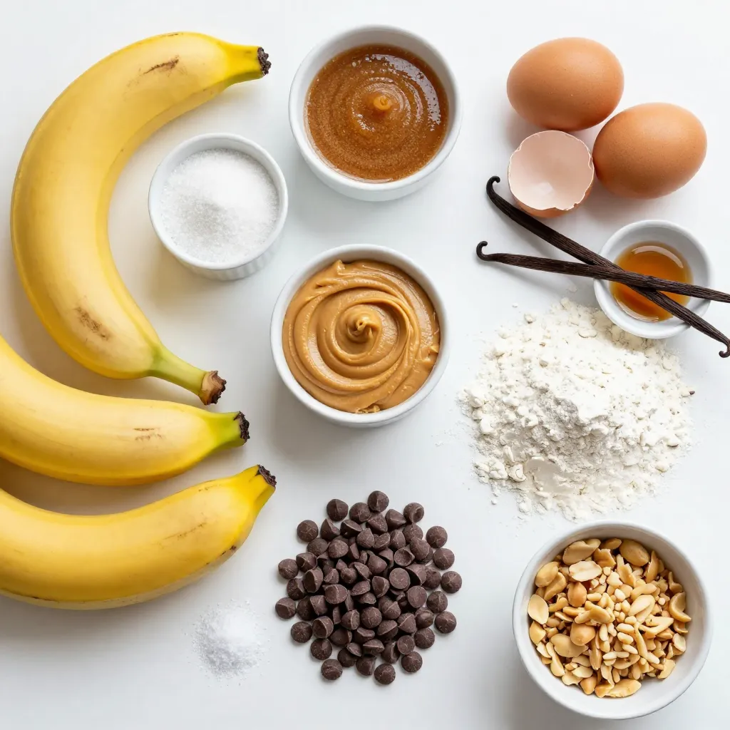 - 3 ripe bananas, thoroughly mashed - 1/3 cup peanut butter (choose smooth or chunky to suit your taste) - 1/2 cup packed brown sugar - 1/4 cup granulated sugar - 2 large eggs, at room temperature - 1 teaspoon vanilla extract - 1 teaspoon baking soda - 1/4 teaspoon salt - 1 1/2 cups all-purpose flour - 1/2 cup chocolate chips (semi-sweet or dark, your preference) - 1/4 cup chopped peanuts (optional, for a crunchy topping) Using ripe bananas is key. They add natural sweetness and moisture. I prefer to mash them until smooth. The peanut butter you choose can shape the flavor. Smooth peanut butter gives a creamy texture, while chunky adds a nice crunch. For sugars, I like to use both brown and granulated. Brown sugar adds depth, while granulated sugar helps with rise. Eggs bring richness and bind the ingredients well. Don’t forget the vanilla extract; it enhances the overall taste. Baking soda is essential for leavening. It helps the bread rise and become fluffy. The salt balances the sweetness. All-purpose flour gives the right structure to the bread. Finally, chocolate chips are a must. They melt slightly into the bread and create sweet pockets. If you want a little crunch, add chopped peanuts. They add a fun texture. {{ingredient_image_2}} First, you need to preheat your oven to 350°F (175°C). This step is key to getting a nice rise on your bread. While the oven heats, prepare your loaf pan. You can grease it with butter or oil. If you prefer, line the pan with parchment paper. This makes it easy to remove the bread later. Now, let’s mix the wet ingredients. Start with three ripe bananas. Mash them well in a large bowl. You want them smooth and creamy. Then, add 1/3 cup of peanut butter. Mix them together until they blend nicely. Next, add 1/2 cup of brown sugar and 1/4 cup of granulated sugar. Stir until the sugars are well mixed in. Now, crack two eggs into the bowl, one at a time. Make sure each egg is fully mixed before adding the next. Finally, pour in 1 teaspoon of vanilla extract and mix everything again. In another bowl, whisk together 1 1/2 cups of all-purpose flour, 1 teaspoon of baking soda, and 1/4 teaspoon of salt. This step helps to spread the baking soda evenly. Once whisked, gently fold the dry ingredients into your wet mixture. Do this slowly to avoid overmixing. Overmixing can make your bread dense, and we want it light and fluffy. It's time to add some fun! Carefully fold in 1/2 cup of chocolate chips. You can choose semi-sweet or dark based on your taste. If you like a little crunch, add 1/4 cup of chopped peanuts for extra flavor. Mix just until you see the chocolate and peanuts evenly spread through the batter. Now, pour your batter into the prepared loaf pan. Smooth the top with a spatula. For a nice look, sprinkle a few extra chocolate chips and peanuts on top. Place the pan in the oven and bake for 60-70 minutes. To check if it's done, insert a toothpick in the center. If it comes out clean or with a few crumbs, your bread is ready! After baking, let the bread cool in the pan for about 10 minutes. This helps it firm up. Then, carefully move the bread to a wire rack. Let it cool completely before slicing. Enjoy your delicious creation! Using the right temperature for your ingredients matters. Eggs and peanut butter should be at room temp. This helps the batter mix well and rise nicely. Cold ingredients can lead to a dense bread. Avoid overmixing the batter. After adding the dry ingredients, stir just until combined. Overmixing can make the bread tough. You want a light, fluffy texture. Spices can elevate your banana bread. Try adding ground cinnamon or nutmeg for extra warmth. A little pinch goes a long way, so start small. Flavored peanut butters add fun twists. Look for options like honey or chocolate peanut butter. These can change the taste and make it special. For a lovely presentation, slice the cooled bread evenly. Arrange the slices on a platter. You can drizzle melted chocolate over the top for a sweet touch. Pair each slice with spreads. Extra peanut butter is a great choice. You can also try cream cheese or a bit of honey for added flavor. Pro Tips Use Overripe Bananas: The riper the bananas, the sweeter and more flavorful your banana bread will be. Look for bananas with lots of brown spots for the best results. Experiment with Nut Butters: While peanut butter is delicious, you can also try almond butter or cashew butter for a different flavor profile. Storage Tips: To keep your banana bread fresh, store it in an airtight container at room temperature for up to 3 days, or refrigerate it for up to a week. Mix-ins Variations: Feel free to add chopped nuts, dried fruit, or even shredded coconut to the batter for added texture and flavor. {{image_4}} If you want to make this recipe gluten-free, use a gluten-free flour blend. Many brands offer great options that work well in baking. You can find them in most grocery stores. This swap keeps the bread light and fluffy. For a vegan option, replace the eggs with flax eggs. To make one flax egg, mix one tablespoon of ground flaxseed with two and a half tablespoons of water. Let it sit for a few minutes until it thickens. You can also use maple syrup instead of sugar for added sweetness. You can easily change up the flavor of your banana bread. Adding nuts or dried fruits gives it a new twist. Consider mixing in walnuts, pecans, or even dried cranberries. This adds texture and a burst of flavor. Experiment with different types of chocolate too. Semi-sweet chocolate chips are great, but dark chocolate or milk chocolate can change the taste. Each type brings its own unique flavor profile. You could even try white chocolate for a fun twist. Making mini loaves or muffins can be a fun change. You can use a muffin tin instead of a loaf pan. This allows for smaller portions that bake faster. Just reduce the baking time to about 20-25 minutes. If you make smaller loaves, check them after about 30 minutes in the oven