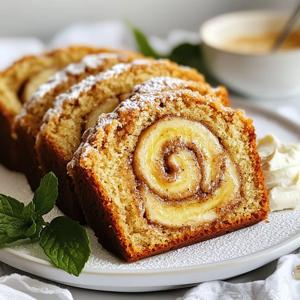 Serve slices of the warm banana bread with a light dusting of extra cinnamon sugar for a pleasing look. For an extra indulgent touch, consider adding a dollop of cream cheese spread on top. A sprig of mint can provide a beautiful and fresh garnish on the side, enhancing both flavor and visual appeal.