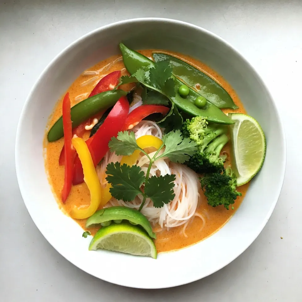 A delicious and creamy coconut curry noodle bowl packed with vibrant vegetables and flavors.
