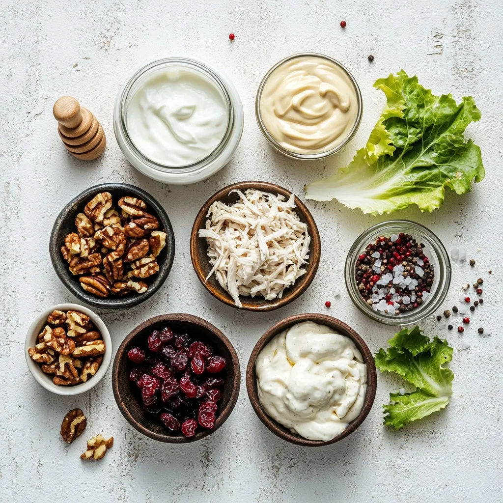 This recipe starts with a simple yet tasty mix of chicken, cranberries, and walnuts. I love using cooked chicken breast as it keeps the dish lean and packed with protein. You can shred it easily, and it blends well with the sweet and tart cranberries.