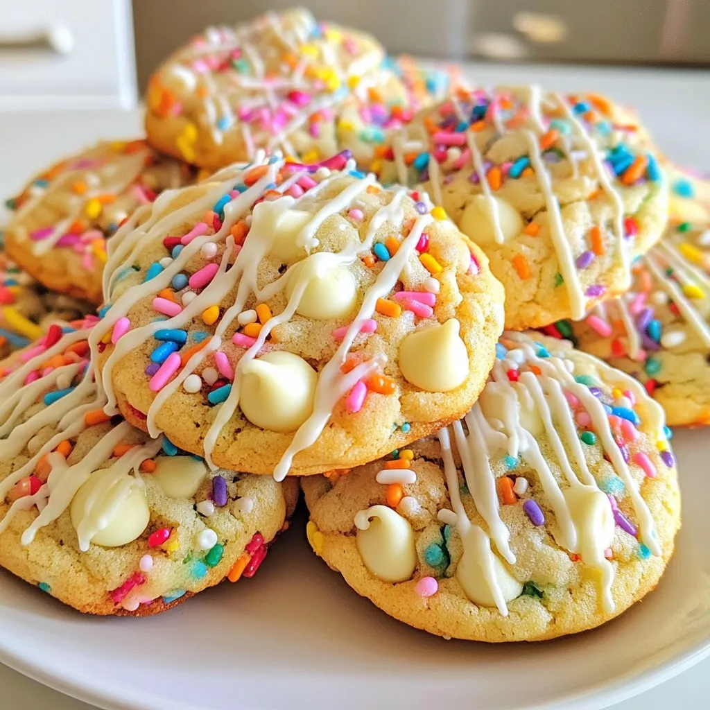 Delicious and festive cookies filled with rainbow sprinkles and white chocolate chips, perfect for celebrations.