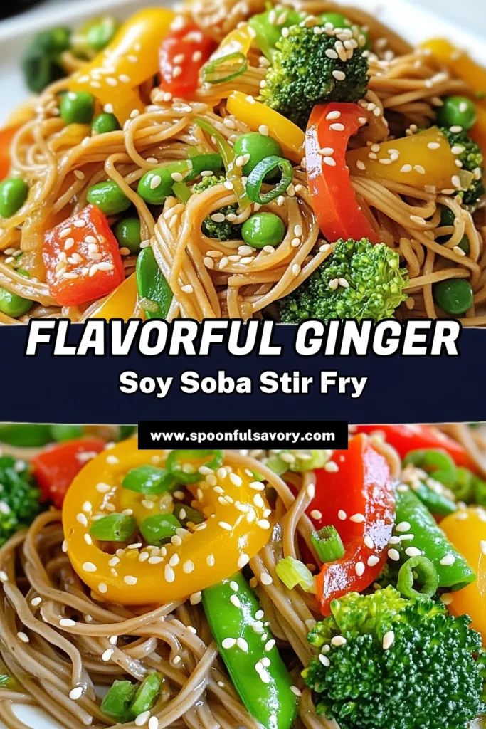 A delicious and healthy stir fry featuring soba noodles, fresh vegetables, and a flavorful ginger soy sauce.