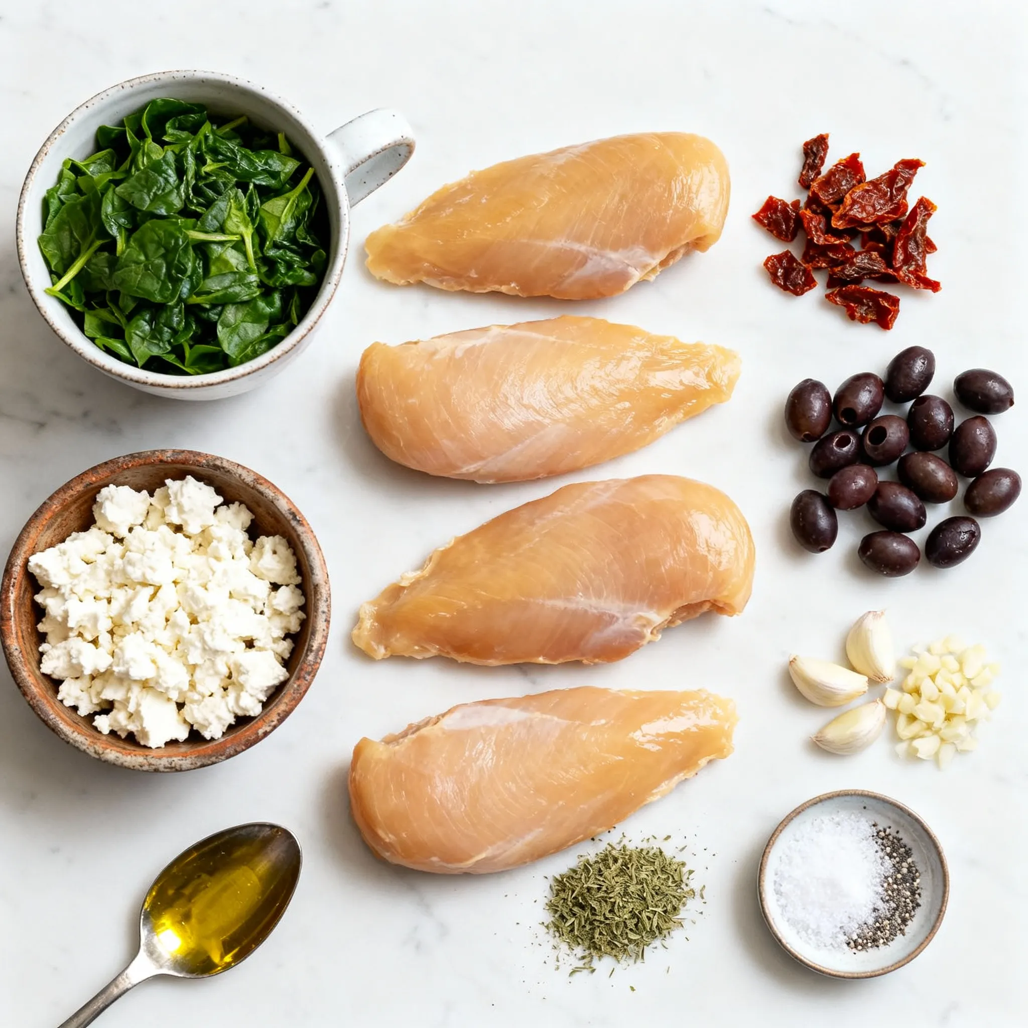 To make Greek stuffed chicken breast, you need simple and fresh ingredients. Here’s a list to help you gather everything: