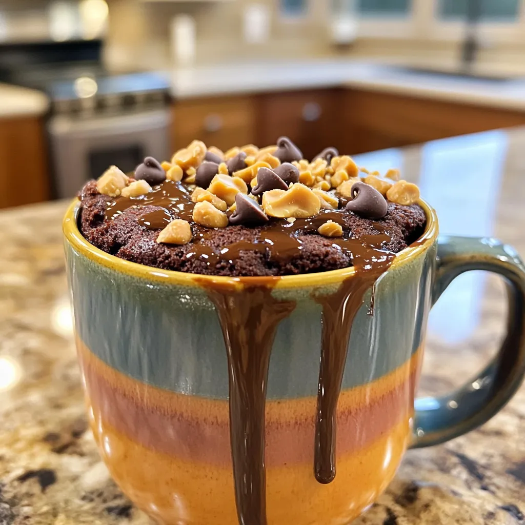 - 4 tablespoons almond flour - 2 tablespoons unsweetened cocoa powder - 1 scoop of chocolate protein powder - 1/2 teaspoon baking powder - A pinch of salt These dry ingredients form the base of your mug cake. Almond flour adds a nutty taste and healthy fats. Cocoa powder gives the cake its rich chocolate flavor. The chocolate protein powder boosts the cake’s protein content, making it great for a snack or meal. Baking powder helps the cake rise, while salt enhances all the flavors. - 1 tablespoon creamy peanut butter - 3 tablespoons unsweetened almond milk (or any milk alternative) - 1 tablespoon maple syrup (or honey) - 1/4 teaspoon vanilla extract The wet ingredients bring moisture and sweetness. Creamy peanut butter adds a rich, nutty flavor. Almond milk keeps it light, but you can use any milk you like. Maple syrup or honey sweetens the cake naturally. Vanilla extract adds depth to the taste, making each bite a delight. - A handful of chocolate chips - Crushed peanuts Toppings can take your mug cake to the next level. Chocolate chips add extra sweetness and melty goodness. Crushed peanuts give a nice crunch and enhance the peanut flavor. Feel free to mix and match these toppings to suit your taste. First, choose a microwave-safe mug. A mug that holds about 12 ounces works best. This size helps the cake rise without spilling. Next, mix the dry ingredients. Add 4 tablespoons of almond flour, 2 tablespoons of unsweetened cocoa powder, 1 scoop of chocolate protein powder, 1/2 teaspoon of baking powder, and a pinch of salt into the mug. Stir well to break any lumps. This step is key for a smooth cake. Now, it's time to add the wet ingredients. Spoon in 1 tablespoon of creamy peanut butter. Then, pour in 3 tablespoons of unsweetened almond milk, 1 tablespoon of maple syrup, and a splash of 1/4 teaspoon of vanilla extract. Use a fork or a small whisk to blend everything together. Mix until the batter is smooth and well combined. If you want extra flavor, fold in a handful of chocolate chips. Place the mug in the microwave. Cook on high for about 1 minute and 30 seconds. Keep an eye on it; check at the 1-minute mark. The cake should rise and look set with a moist center. If it still looks wet, give it a few more seconds. After cooking, let the mug cake cool for one minute. For a tasty finish, sprinkle some crushed peanuts and a few more chocolate chips on top. Enjoy your warm treat! Eliminating lumps is key for a smooth cake. If you see lumps, the cake may not rise well. Mix the dry ingredients well with a fork before adding wet ones. Every microwave is different. Start with 1 minute, then check. If it’s not set, add more time in 15-second bursts. This ensures a perfect bake. For a richer taste, add chocolate chips to the mix. They melt and give a gooey texture. You can also top with crushed peanuts for crunch. Serving suggestions include a dollop of Greek yogurt or whipped cream. These add creaminess and make your mug cake even better. To lower calories, try using a sugar substitute instead of maple syrup. You can use stevia or erythritol. If you want extra protein, add more protein powder. This keeps the cake healthy but tasty. Always adjust your ingredients based on your dietary needs. {{image_4}} You can switch up flavors in many fun ways. Try using almond or cashew butter instead of peanut butter. Each nut brings a unique taste that adds to the cake. You can also mix in spices like cinnamon. Cinnamon adds warmth and pairs well with chocolate. If you need gluten-free options, use alternative flours like coconut or oat flour. Both work well in this recipe! For vegan adaptations, you can skip the egg and use a plant-based protein powder. Replace dairy milk with almond milk or coconut milk for an easy swap. Want to change the flavor profile? Switch the chocolate protein powder for vanilla. This change gives a whole new taste to your mug cake. For chocolate, top with chocolate chips for extra richness. For vanilla, try fresh berries or a dollop of yogurt for a bright finish. For short-term storage, place any leftover mug cake in an airtight container. This helps keep it fresh in the fridge for about two days. When you're ready to enjoy it again, simply reheat the mug cake in the microwave. Heat it for about 20 to 30 seconds. Check its warmth, so it stays moist and tasty. If you want to save your mug cake for later, freezing is a great choice. Let the cake cool completely, then wrap it tightly in plastic wrap. After that, place it in a freezer bag to prevent freezer burn. It can stay frozen for up to a month. When you're ready to eat it, take it out and let it thaw in the fridge overnight. To reheat, microwave it for about 30 to 60 seconds. This keeps the texture and flavor just right. For the best taste and texture, enjoy your mug cake soon after making it. It tastes amazing warm, with a gooey center. If you serve it at gatherings, keep it in the mug for a cozy look. You can also invert it onto a plate for a fancier touch. Add a dollop of Greek yogurt or whipped cream on top. This gives it an extra creamy flavor that everyone will love. Yes, you can make this mug cake without protein powder. If you skip it, you may want to add more almond flour or cocoa powder to keep the balance. You can also use flour blends that include protein, like chickpea flour. Just note that the cake might not be as fluffy without protein powder. You will know your mug cake is done when it rises and looks set. The center should be moist but not too wet. Check at the one-minute mark. If it seems too soft, cook for an extra 10 to 15 seconds. Keep an eye on it to avoid overcooking. If you need a different flour, try oat flour or coconut flour. Both work well and change the taste a bit. If you're gluten-free, make sure to use certified gluten-free options. For nut allergies, sunflower seed flour is a great choice, but you might need to adjust the liquid in the recipe. Yes, this mug cake is great for meal prep! You c