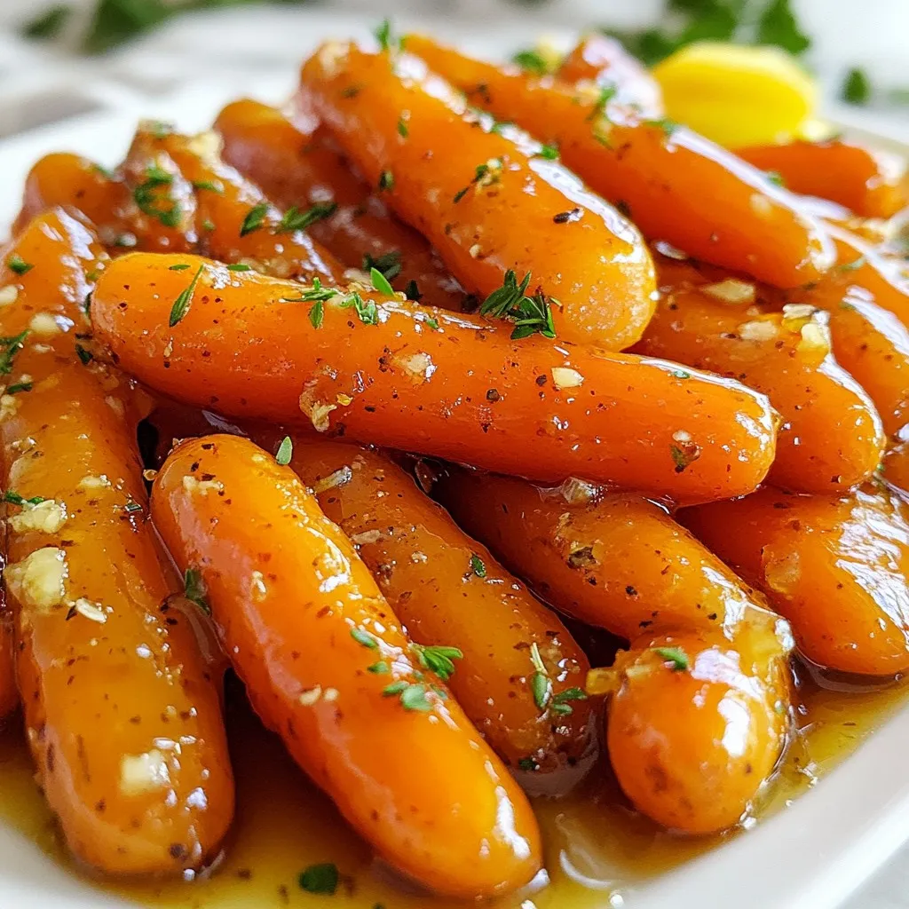 A delicious side dish featuring tender baby carrots glazed with a sweet and savory honey garlic sauce.