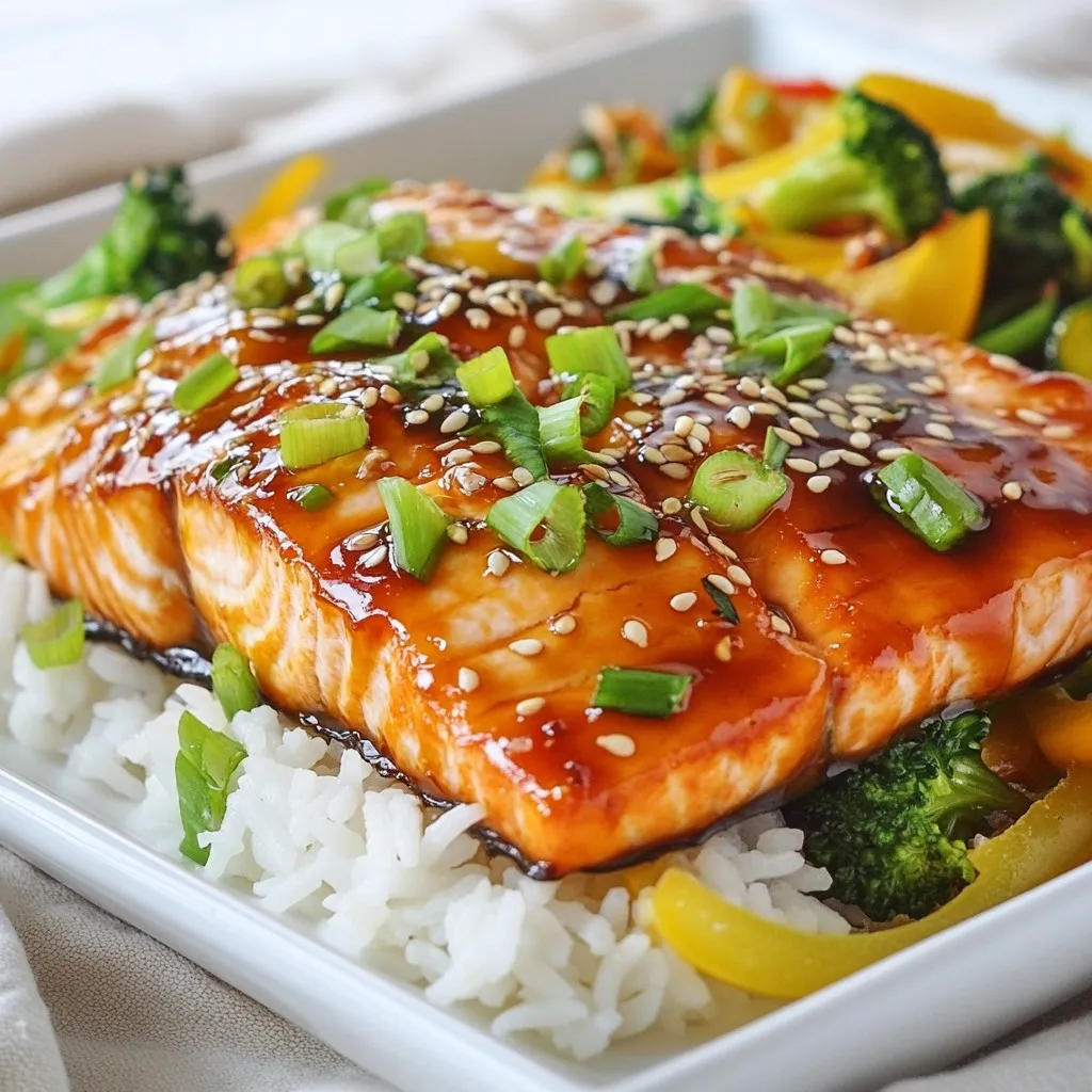 A delightful sweet and savory salmon dish with a honey soy glaze.
