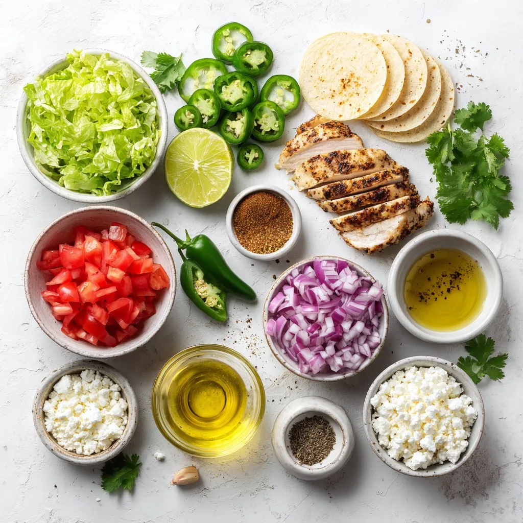 Delicious tacos filled with marinated chicken, fresh vegetables, and a zesty lime flavor.
