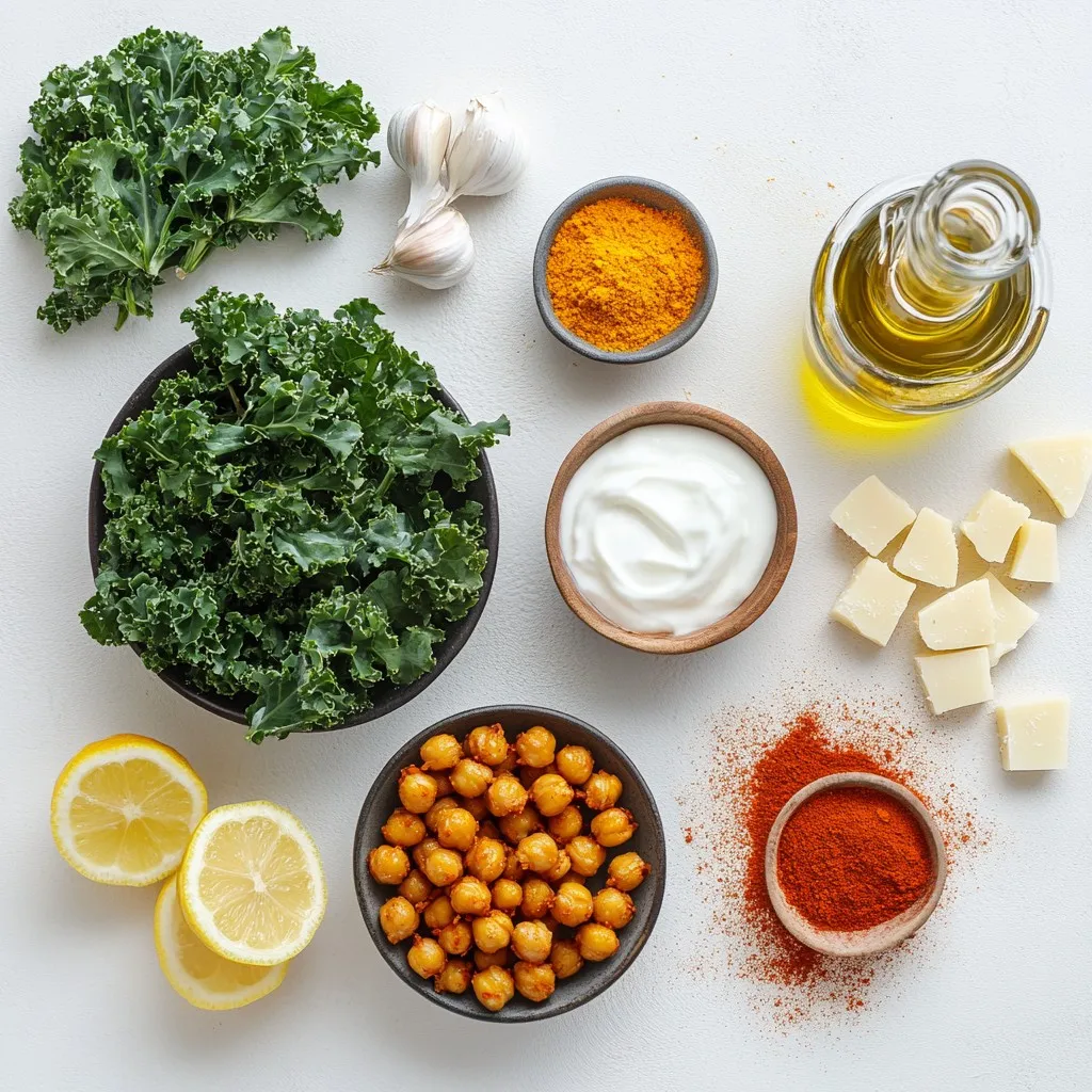 A refreshing salad featuring kale, crispy chickpeas, and a creamy dressing.
