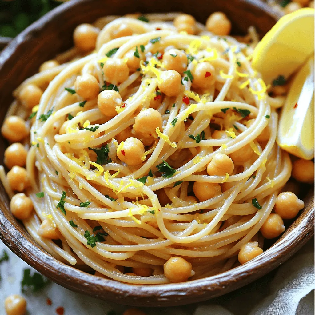 To add protein, I love to include grilled chicken or shrimp. They both work well with the lemon and garlic flavors. Just grill the chicken or shrimp until they are cooked through. Then, toss them into the pasta right after adding the chickpeas. This extra protein makes the dish heartier. It also gives you more energy.