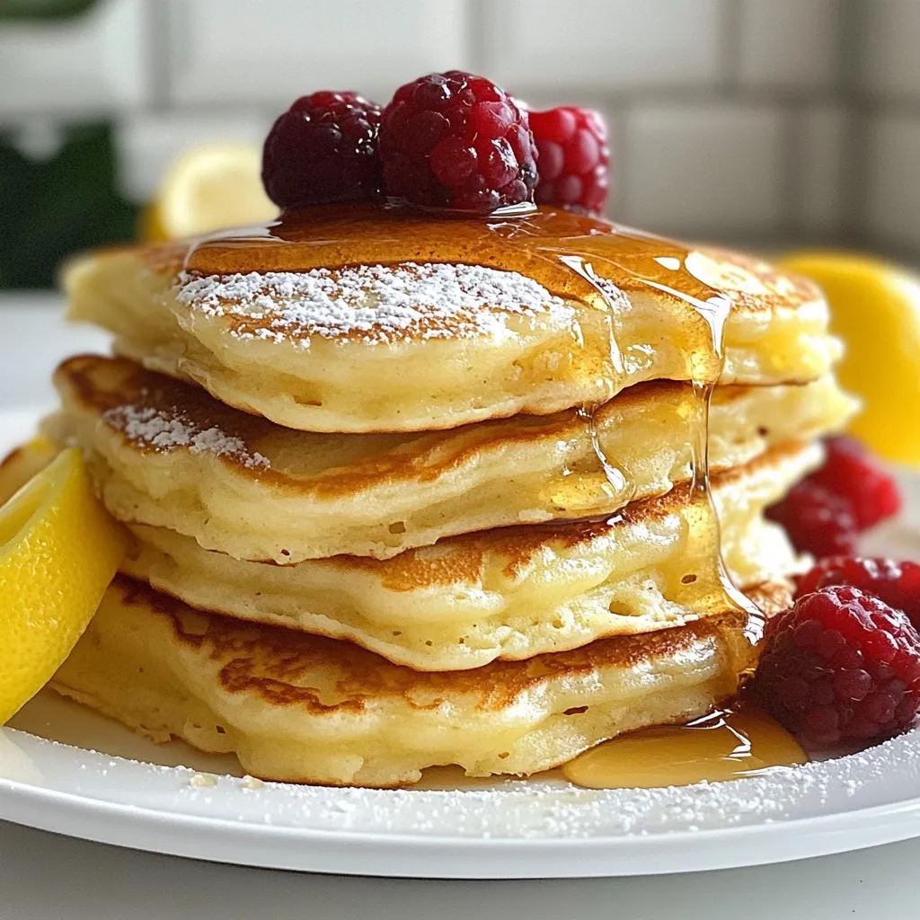Delicious and fluffy pancakes made with ricotta cheese and fresh lemon for a delightful breakfast.