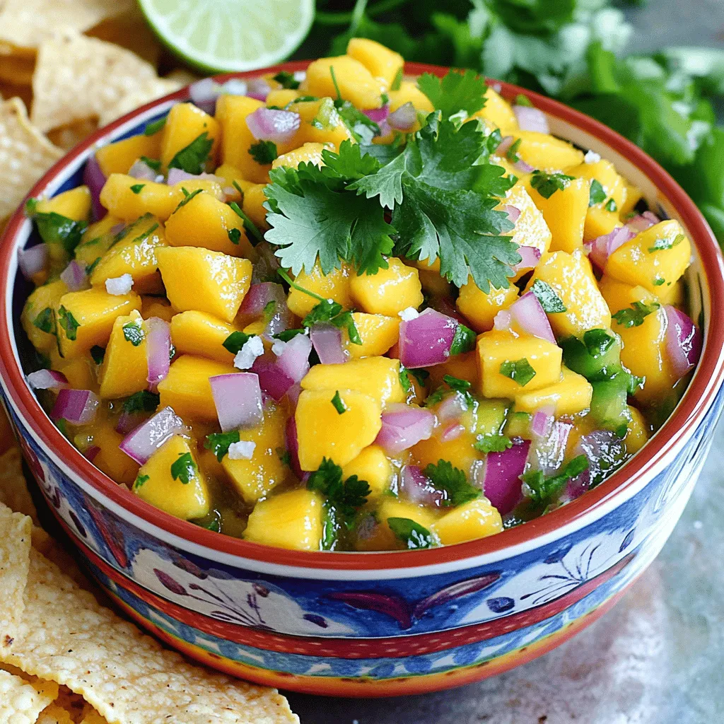 To start, you need a ripe mango. First, peel the mango carefully. Watch out for the large pit inside. After peeling, dice the mango into small cubes. Aim for uniform pieces for even mixing. Once diced, place the mango cubes in a mixing bowl. The mango adds sweetness to the salsa.