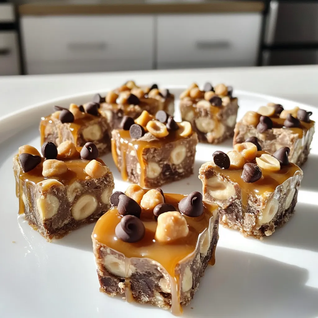 For No Bake Snickers Protein Bites, gather these items: - 1 cup natural peanut butter - 1/2 cup honey or maple syrup - 2 cups rolled oats - 1/2 cup vanilla protein powder - 1/4 cup unsweetened cocoa powder - 1/4 cup chopped peanuts - 1/2 cup mini chocolate chips - 1/2 cup caramel sauce (store-bought or homemade) - A pinch of salt Each bite packs a good punch of nutrition. A serving (about one bite) has: - Calories: 130 - Protein: 5 grams - Carbs: 16 grams - Fat: 5 grams - Fiber: 2 grams - Sugar: 5 grams These bites are great for a quick snack. They help fuel your day while keeping you satisfied. If you need to switch some ingredients, here are some ideas: - Use almond butter instead of peanut butter for a nut-free option. - Swap honey for agave syrup if you want a vegan choice. - For a gluten-free version, ensure your oats are certified gluten-free. - You can replace mini chocolate chips with dried fruit for a healthier twist. - Caramel sauce can be omitted if you prefer fewer sugars. These swaps keep the flavor while fitting your needs. To start, gather all your ingredients. You will need peanut butter, honey or maple syrup, oats, protein powder, cocoa powder, peanuts, chocolate chips, caramel sauce, and salt. This mix makes delicious protein bites. In a large bowl, add 1 cup of natural peanut butter and 1/2 cup of honey or maple syrup. Stir well until smooth. Next, add 2 cups of rolled oats, 1/2 cup of vanilla protein powder, 1/4 cup of cocoa powder, and a pinch of salt. Mix until there are no dry spots left. Then, fold in 1/4 cup of chopped peanuts and 1/2 cup of mini chocolate chips. This step adds great texture and flavor. With clean hands, scoop about a tablespoon of the mixture. Roll it into a ball and place it on a parchment-lined baking sheet. Repeat until all the mix is shaped. After that, drizzle caramel sauce over each ball for a sweet touch. Chill the baking sheet in the fridge for at least 30 minutes. This helps them firm up. Enjoy your protein bites fresh or store them in the fridge for later. To get the right texture, start with creamy natural peanut butter. If it’s too thick, your bites may be dry. Mix in honey or maple syrup until smooth. This helps bind the oats and protein powder. After mixing, the texture should be slightly sticky but hold its shape. If your mixture is too wet, add a bit more oats or protein powder until you find the perfect balance. You can boost flavor by adding extras. Try vanilla extract for sweetness or cinnamon for warmth. Want a nutty twist? Add chopped almonds or cashews. You can also swap mini chocolate chips for dark chocolate chips for a richer taste. For a chewy texture, fold in dried fruits like raisins or cranberries. These small changes can take your bites from good to great. To wow your guests, present your protein bites nicely. Arrange them on a colorful plate to make them pop. Drizzle extra caramel sauce over the top for a shiny finish. A sprinkle of chopped peanuts adds a nice crunch and visual appeal. If you’re feeling fancy, use cupcake liners for individual servings. These little touches make your healthy treat look gourmet and inviting. {{image_4}} You can easily make these protein bites gluten-free. Use certified gluten-free oats. This keeps the bites safe for anyone with gluten issues. Check the labels on your protein powder too. Some brands have gluten-free options. You can switch up the protein powder. If you want a chocolate flavor, use chocolate protein powder. For a vegan option, choose a plant-based protein. You can also try flavors like peanut butter or cookie dough. Each choice adds its own twist to the bites. Get creative with flavors! You can add cookie dough flavoring for a fun twist. Mint extract can give a fresh taste. Just a drop can transform the bites. You can also mix in flavors like cinnamon or vanilla for variety. The options are endless, so let your taste buds guide you! To keep your No Bake Snickers Protein Bites fresh, store them in an airtight container. Place them in the fridge to maintain their texture and flavor. Make sure to separate layers with parchment paper to avoid sticking. You can freeze these protein bites for longer storage. Just place them in a single layer on a baking sheet. Freeze them for about one hour, then transfer to a freezer-safe bag. They will stay fresh for up to three months. These bites last about one week in the fridge. Check for any signs of spoilage, like an off smell or change in texture. If frozen, let them thaw in the fridge before eating. This way, they stay tasty and ready to enjoy! Yes, you can use any nut butter you like. Almond butter or cashew butter works well. Each will change the taste a bit. Just make sure it is natural and smooth. This keeps the bites creamy and easy to mix. Absolutely! To make this recipe vegan, use maple syrup instead of honey. Also, choose a plant-based protein powder. This keeps your bites tasty and friendly for everyone. These bites can last up to one week in the fridge. Store them in an airtight container. For longer storage, you can freeze them for up to three months. Just thaw them in the fridge before enjoying! This post covered key ingredients and how to make No Bake Snickers Protein Bites. You learned about ingredient swaps, detailed mixing, and tips for great texture. We also explored variations for different diets and how to store these treats properly. Remember, these bites are easy to make and customize. Enjoy experimenting with flavors and ingredients to find your perfect snack. Stay creative and have fun making the best treats that fit your needs!