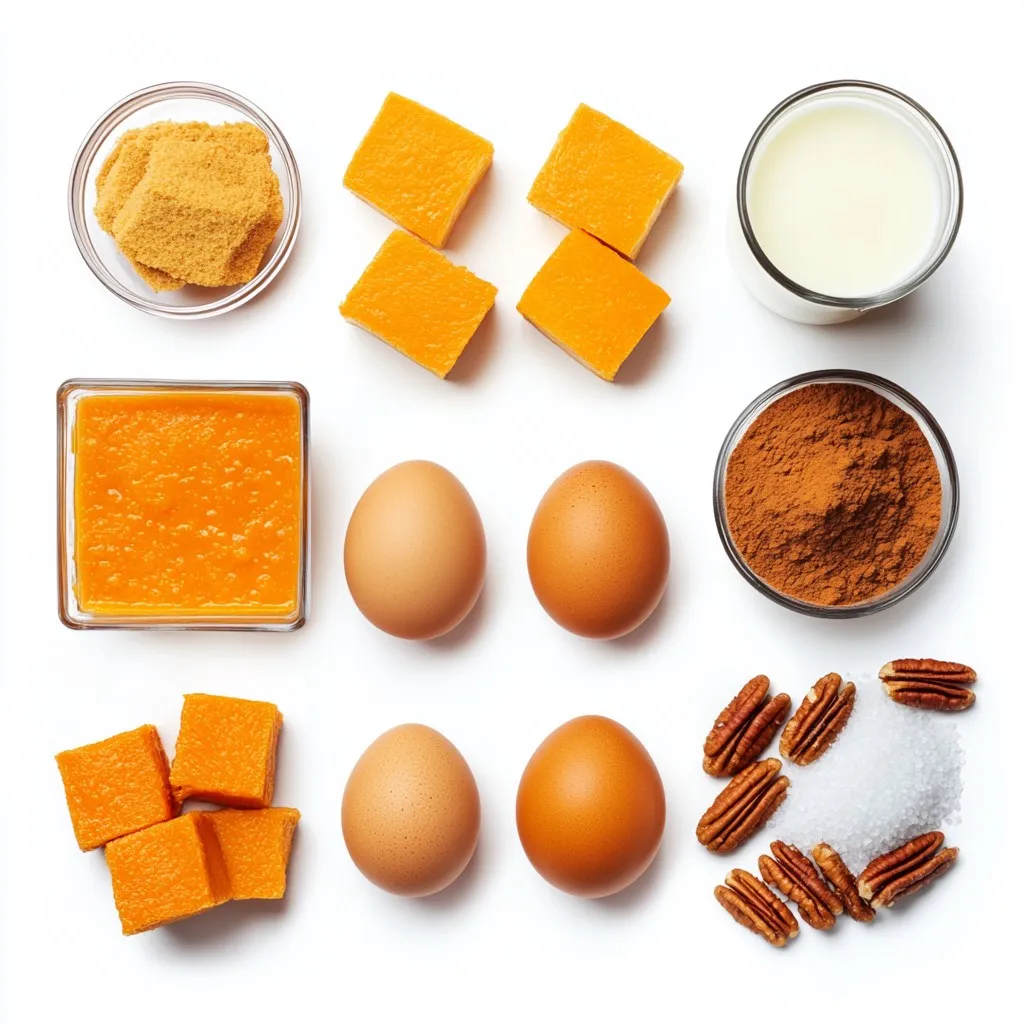 In a large mixing bowl, combine the canned pumpkin puree, eggs, and milk. Add one teaspoon of vanilla extract for a nice touch. Sprinkle in the ground cinnamon, nutmeg, ginger, and salt. Finally, mix in half a cup of brown sugar. Use a whisk to blend until smooth. This pumpkin base is the heart of your bake, so make it nice and creamy.