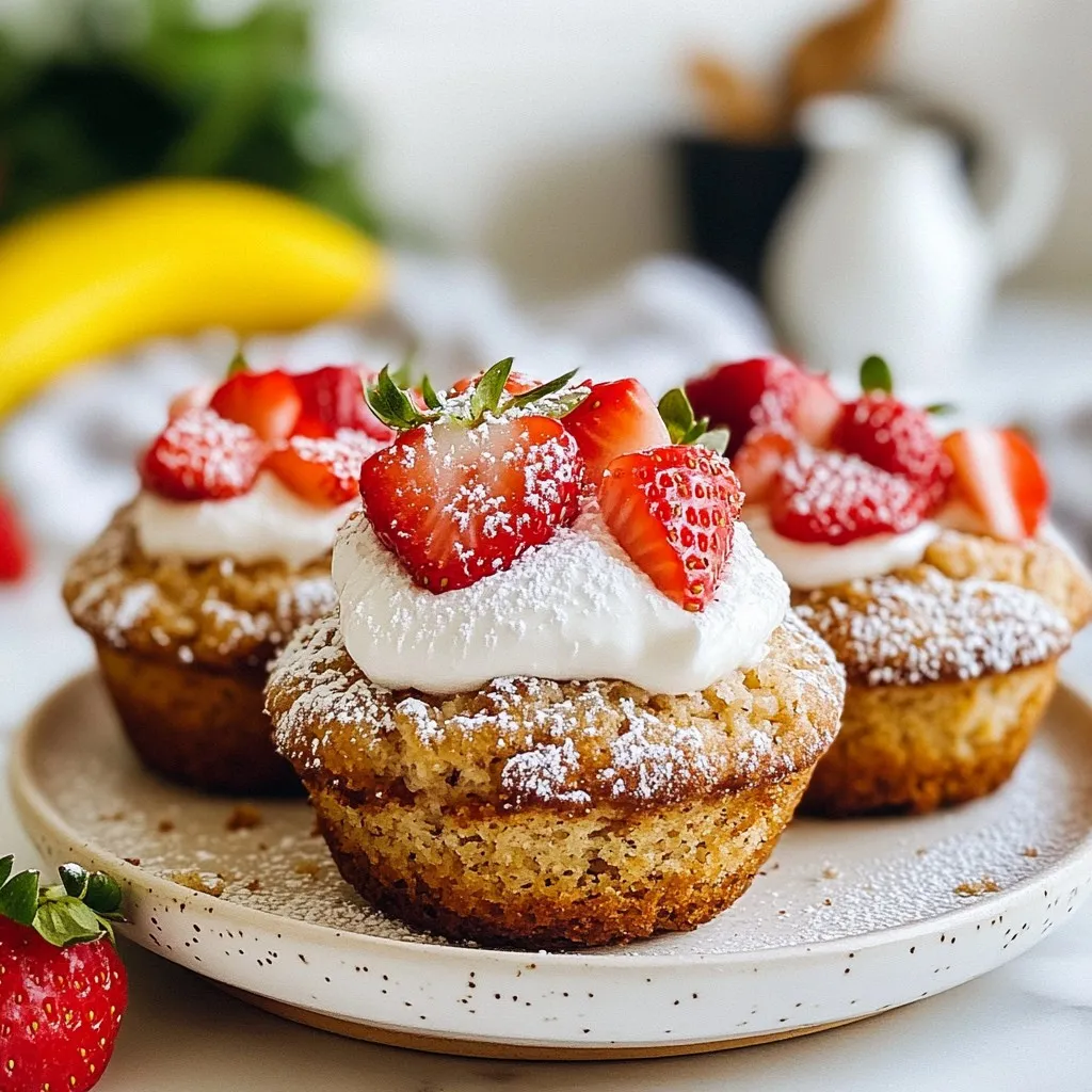 Delicious muffins made with oats, bananas, and strawberries, perfect for breakfast or a snack.