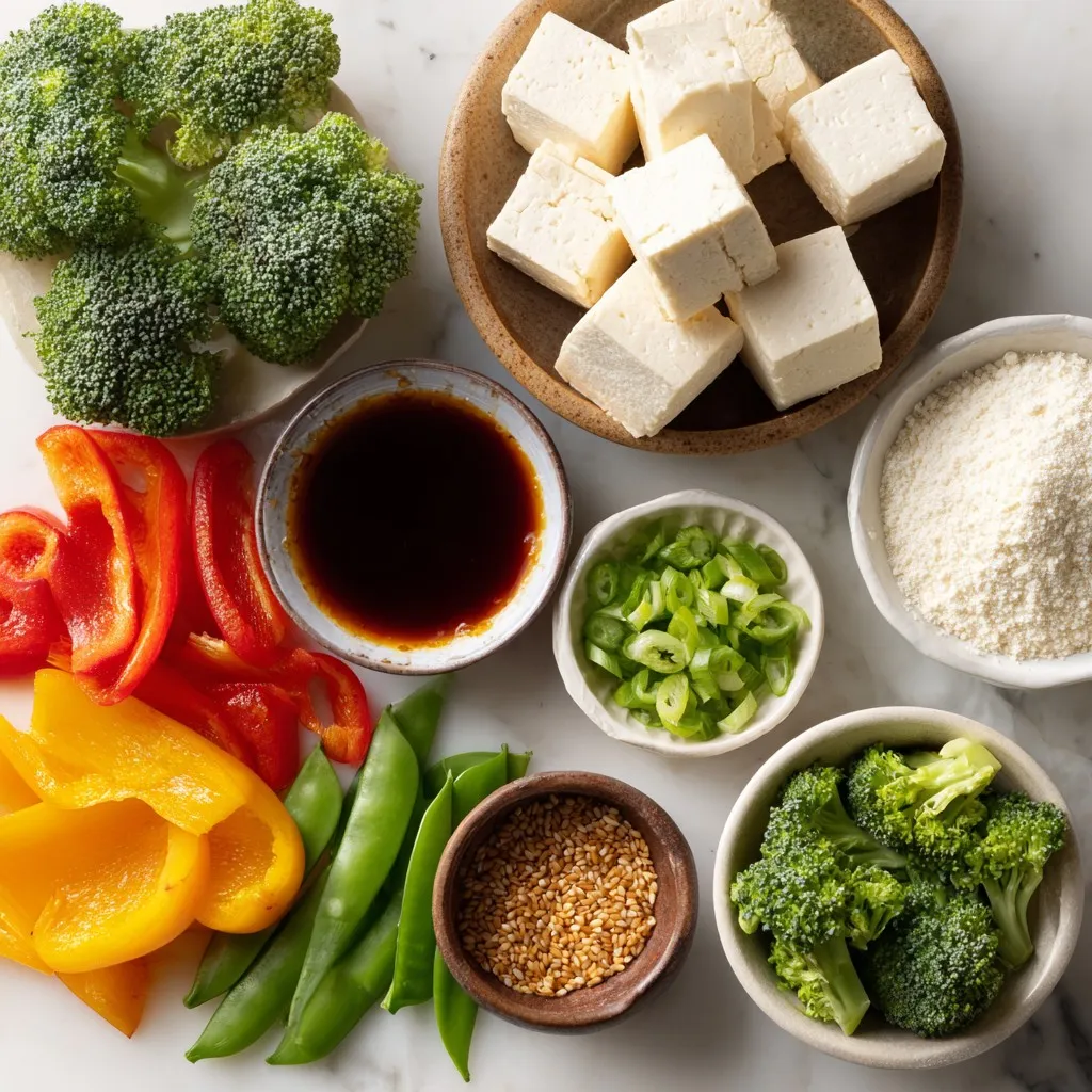To create a tasty Sweet Chili Tofu Stir-Fry, you need firm tofu, colorful veggies, and flavorful sauces. Start with firm tofu. Press it well to remove moisture, so it can crisp nicely. Cut it into 1-inch cubes for even cooking. Next, grab some fresh or frozen vegetables. I love using bell peppers, broccoli, and snap peas. They add both crunch and color to the dish.