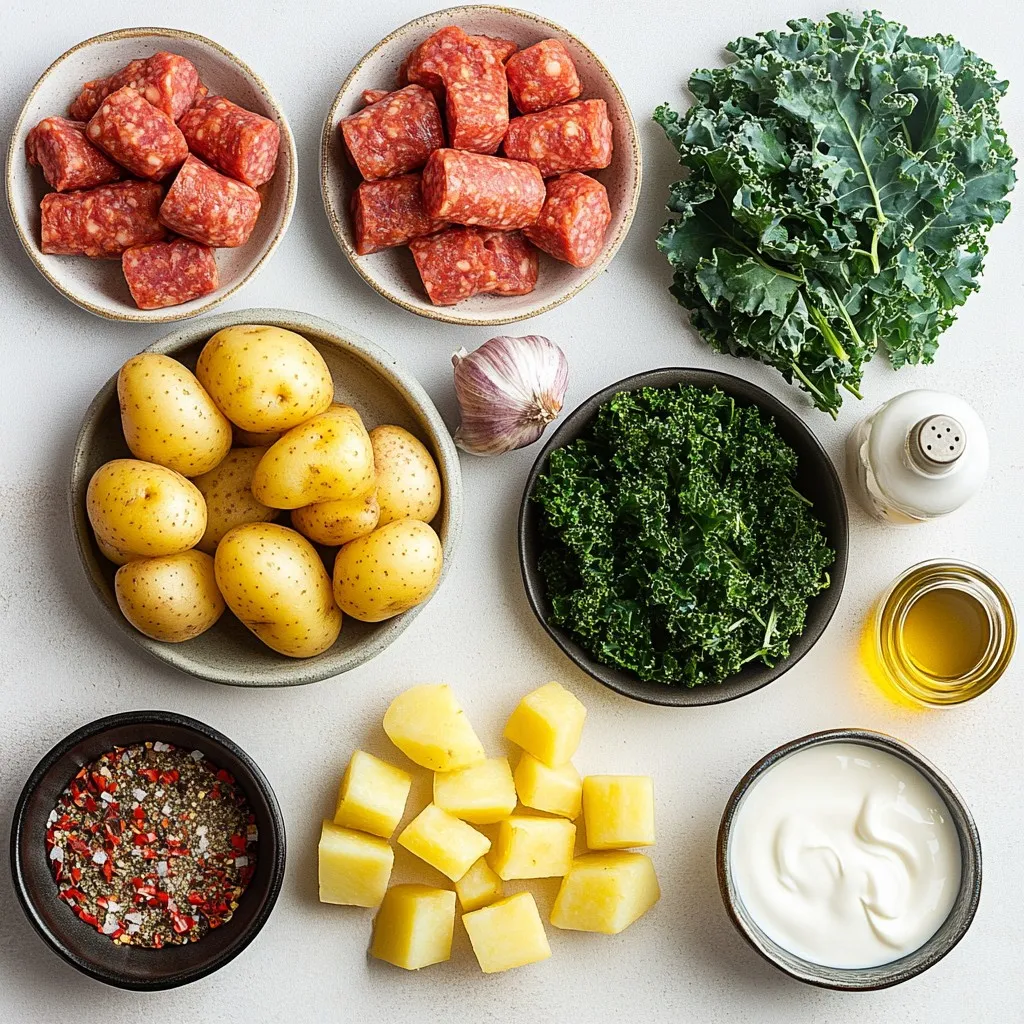 A hearty and flavorful soup featuring Italian sausage, kale, and creamy potatoes.