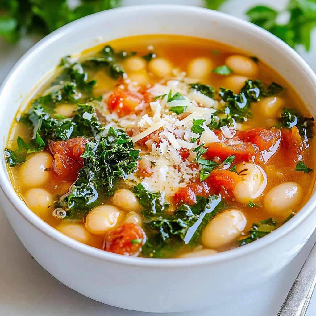 To make a great Tuscan white bean soup, gather your ingredients first. The extra virgin olive oil adds a rich flavor. The onion, garlic, carrots, and celery create a strong base. Cannellini beans bring creaminess and protein. Vegetable broth adds depth. Diced tomatoes lend sweetness and acidity. Fresh kale gives the soup a nice crunch and color. Finally, seasonings like rosemary and thyme provide a warm aroma. You can garnish with parsley or cheese for extra flair. Each ingredient plays a role in this hearty dish.
