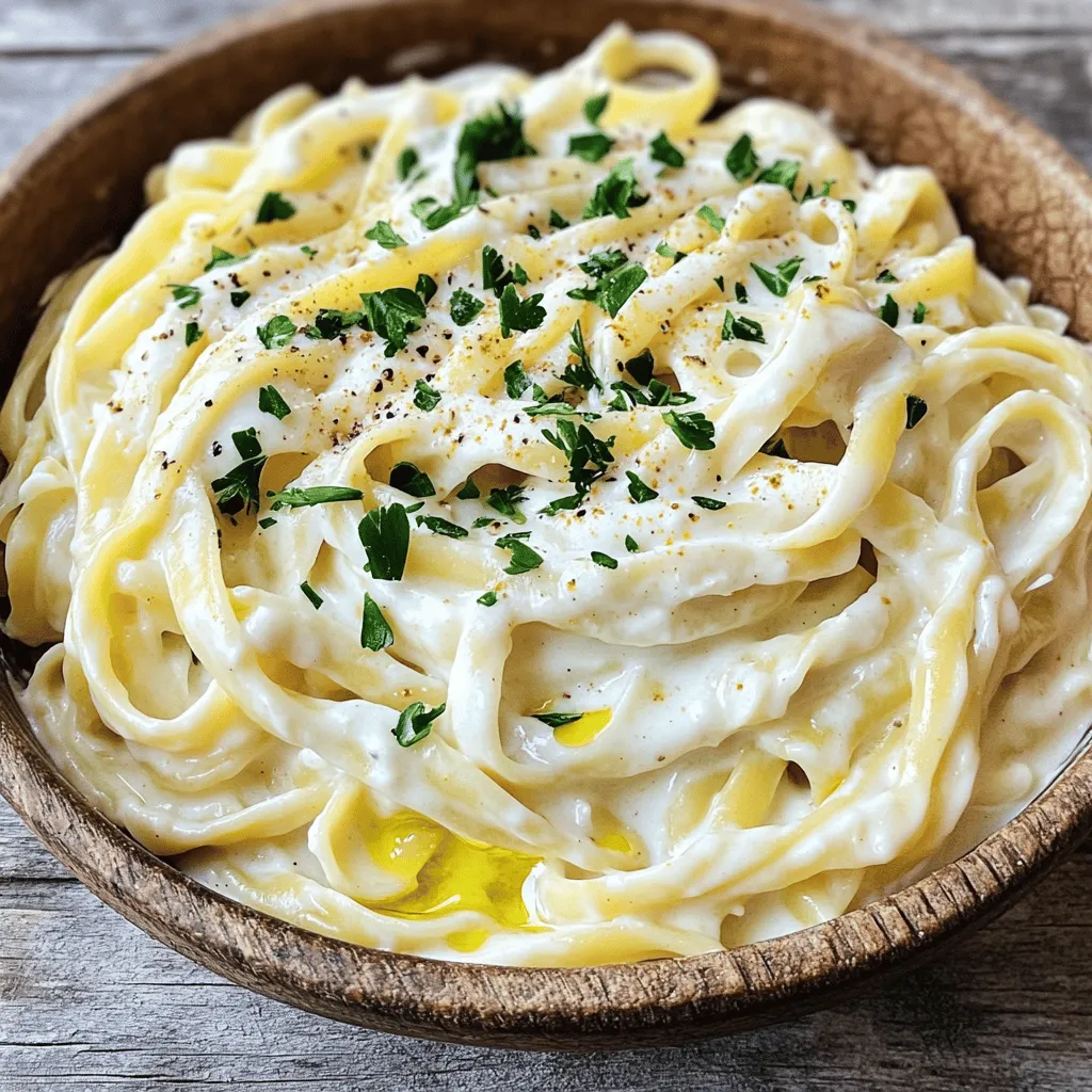 To make Vegan Cashew Alfredo Fettuccine, gather these simple ingredients: - 1 cup raw cashews, soaked for 2-4 hours - 1 cup unsweetened almond milk - 2 tablespoons nutritional yeast - 2 tablespoons fresh lemon juice - 2 tablespoons extra virgin olive oil - 2 garlic cloves, minced - Salt and freshly ground black pepper to taste - 8 oz fettuccine pasta (gluten-free if preferred) - Fresh parsley, finely chopped (for garnish) - Optional: pinch of freshly grated nutmeg Each ingredient plays a key role in crafting a creamy and flavorful sauce. The cashews provide a rich base, while almond milk adds creaminess. Nutritional yeast gives a cheesy taste, and lemon juice brightens the flavor. Olive oil adds richness, and garlic gives depth. Season with salt and pepper for balance. The fettuccine is the perfect pasta to carry this sauce. Fresh parsley adds color and freshness. If you like, a pinch of nutmeg adds a warm note. - First, soak 1 cup of raw cashews for 2 to 4 hours. This softens them. - Drain and rinse the soaked cashews under cool water. - In a blender, combine the cashews, 1 cup of unsweetened almond milk, 2 tablespoons of nutritional yeast, 2 tablespoons of fresh lemon juice, 2 tablespoons of extra virgin olive oil, 2 minced garlic cloves, salt, and pepper. - Blend the mixture on high speed until it is smooth and creamy. - If your sauce is too thick, add more almond milk slowly. - For a tasty twist, add a pinch of freshly grated nutmeg. - In a large pot, bring a generous amount of salted water to a rolling boil. - Add 8 ounces of fettuccine pasta to the boiling water. - Cook the pasta according to package instructions until it is al dente, about 8 to 10 minutes. - Once cooked, drain the pasta but keep ½ cup of the starchy pasta water for later. - In a large skillet over medium heat, pour in the prepared cashew sauce. - Bring the sauce to a gentle simmer. - If the sauce seems too thick, add a splash of the reserved pasta water. Stir until creamy. - Add the drained fettuccine directly into the skillet with the sauce. - Use tongs or a fork to toss the pasta and coat it well with the sauce. - Cook together for an additional 2 to 3 minutes until heated through. - Soak your cashews for 2-4 hours. This softens them for blending. - After soaking, drain and rinse them well. - Blend soaked cashews with almond milk, nutritional yeast, lemon juice, olive oil, garlic, salt, and pepper. - If the sauce is thick, add more almond milk slowly until smooth. - For a flavor boost, add a pinch of nutmeg. - Bring salted water to a rolling boil before adding pasta. - Cook fettuccine for 8-10 minutes for al dente. - Save about ½ cup of the starchy pasta water before draining. - This water helps adjust the sauce's consistency later. - Garnish with finely chopped fresh parsley for color. - Drizzle with extra virgin olive oil before serving. - Sprinkle more nutritional yeast on top for added flavor. - Pair with a simple side salad or steamed veggies for balance. {{image_4}} You can boost your Vegan Cashew Alfredo Fettuccine by adding vegetables. Here are some great choices: - Spinach - Broccoli - Peas - Zucchini - Mushrooms These veggies add color and nutrition. To cook them, try these methods: - Sauté in a skillet with olive oil for a few minutes until tender. - Steam them lightly to keep their crunch. - Roast in the oven for about 20 minutes at 400°F for a deeper flavor. Mix and match to find your favorite combinations! If you need gluten-free options, choose gluten-free fettuccine. Many brands offer this now. Just check the label. For a nut-free version, swap cashews with sunflower seeds. Soak the seeds just like cashews. Blend them with almond milk for a creamy texture. These changes allow everyone to enjoy this dish! To make your Alfredo sauce pop, consider adding spices. Here are a few suggestions: - Smoked paprika for a smoky taste. - Red pepper flakes for heat. - Fresh herbs like basil or thyme for extra freshness. You can also serve your pasta with flavored oils. A drizzle of truffle oil or chili oil can elevate your dish. Just a little goes a long way! To keep your Vegan Cashew Alfredo Fettuccine fresh, store it in the fridge. Use an airtight container to prevent moisture loss. You can keep it for up to three days. If you want to separate the sauce from the pasta, it will last longer. This way, you can mix it fresh when you're ready to eat. When reheating, you want to keep the creaminess. The best method is to use a skillet over low heat. Add a splash of almond milk to the skillet to help the sauce stay smooth. Stir gently until heated through. Avoid using high heat, as it may cause the sauce to thicken too much. You can freeze this dish, but it's best to freeze the sauce separately. To freeze, pour the cooled cashew sauce into a freezer-safe bag. Squeeze out excess air and seal it tight. You can freeze the sauce for up to three months. When you're ready to eat, thaw it in the fridge overnight. Reheat and mix it with freshly cooked pasta for a quick meal. You can use other nuts to create creaminess. Try using soaked almonds or macadamia nuts. Sunflower seeds also work well for a nut-free option. Each choice gives a unique flavor but keeps the sauce rich. Yes, you can! Prepare the sauce and cook the pasta ahead of time. Store them in separate containers in the fridge. Just reheat the sauce and pasta together before serving. This makes meal prep easy and quick. To adjust the sauce's texture, start with the right amount of almond milk. Blend until smooth, then check the thickness. If it's too thick, slowly add more almond milk until it feels just right. Adding a splash of reserved pasta water can help too! In this blog post, we explored how to make a delicious cashew cream fettuccine. We discussed the simple ingredients you'll need and provided step-by-step instructions. You learned tips for making the sauce and cooking pasta to perfection. We also shared ways to add vegetables and modify the dish for d